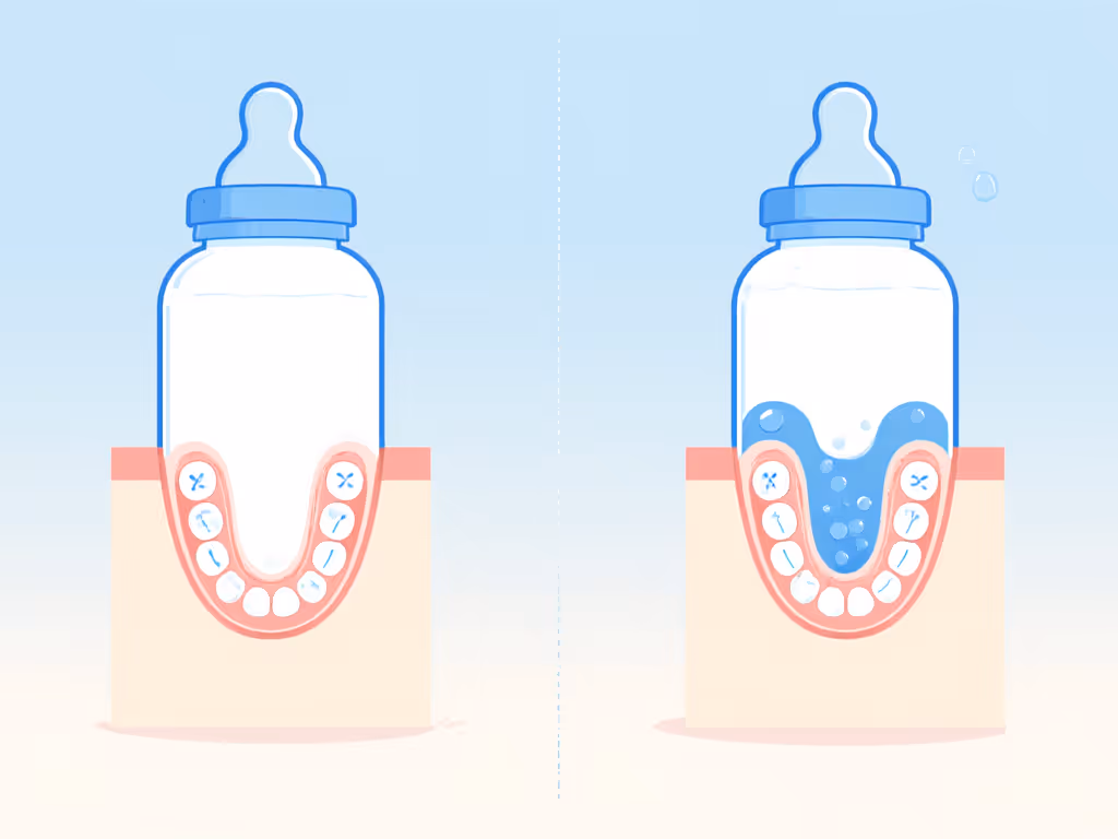 - Eliminate bedtime bottles: Switch to water-only bottles by 6 months. Breastmilk/formula must be cleared from teeth via gauze wipe post-feed.